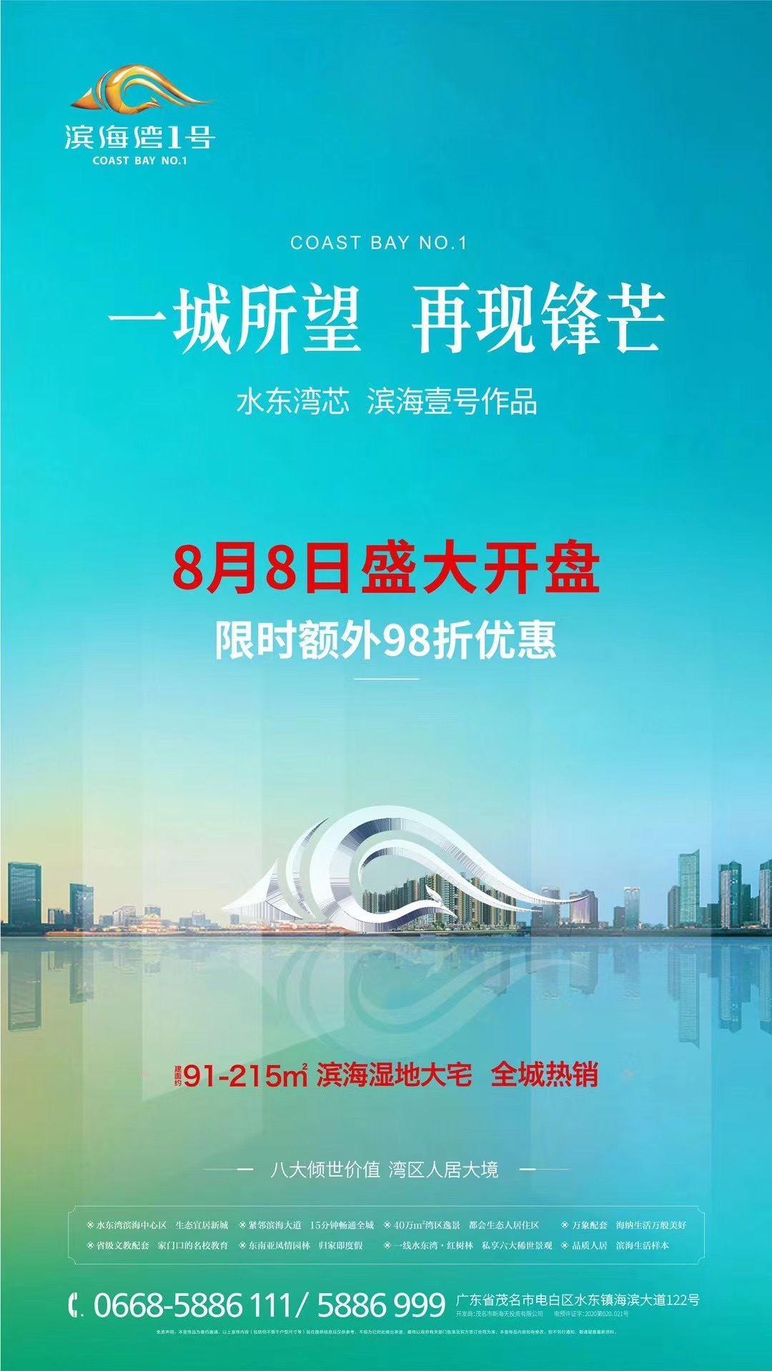 滨海湾1号 水湾东芯 滨壹海号作品 8月8日盛开大盘 91-215m² 滨海湿大地宅 限时额外98折惠优 全城热销 ️5886111/5886999