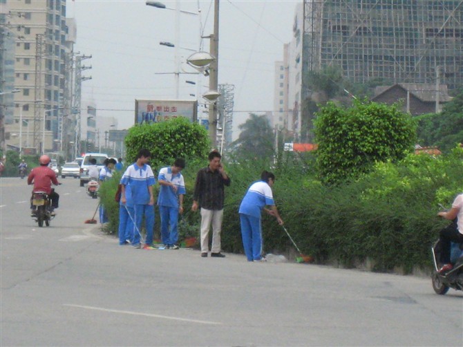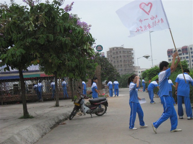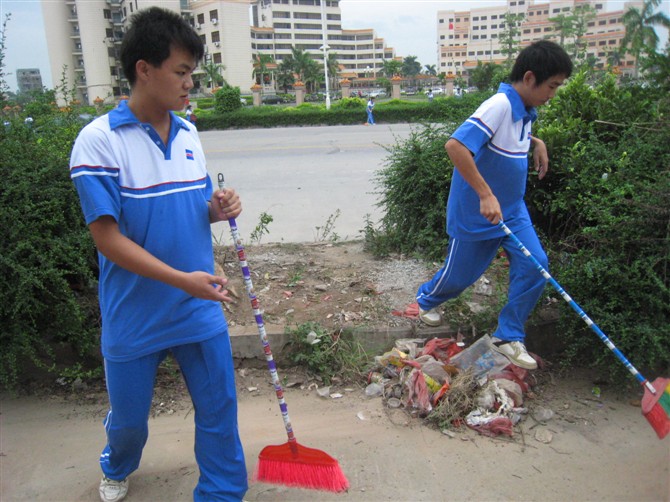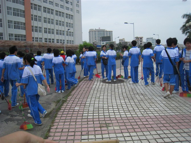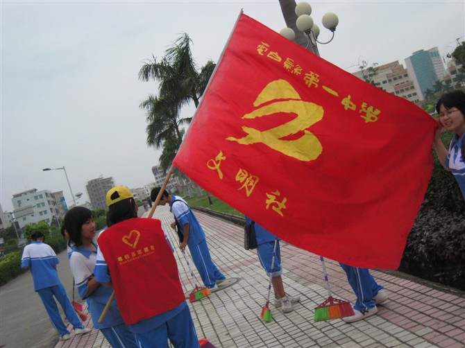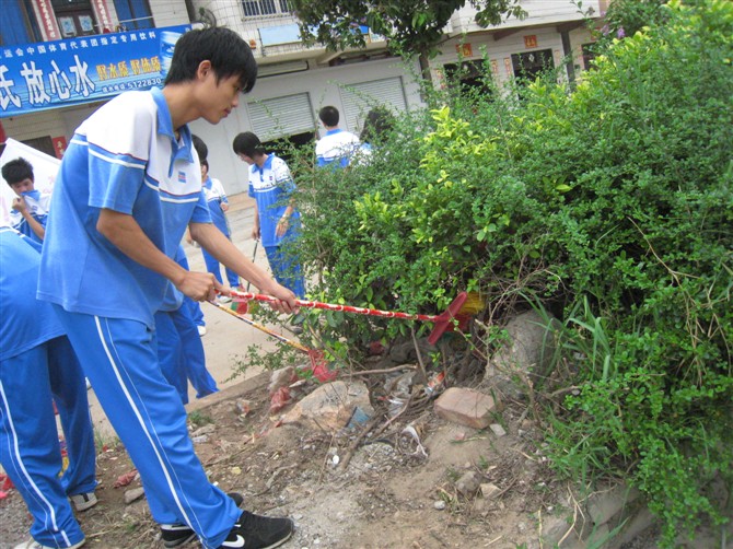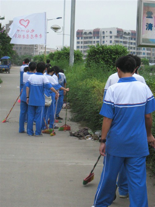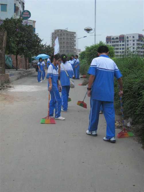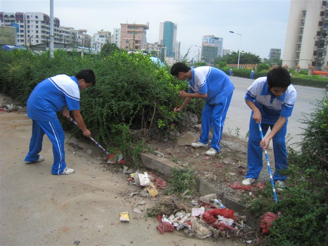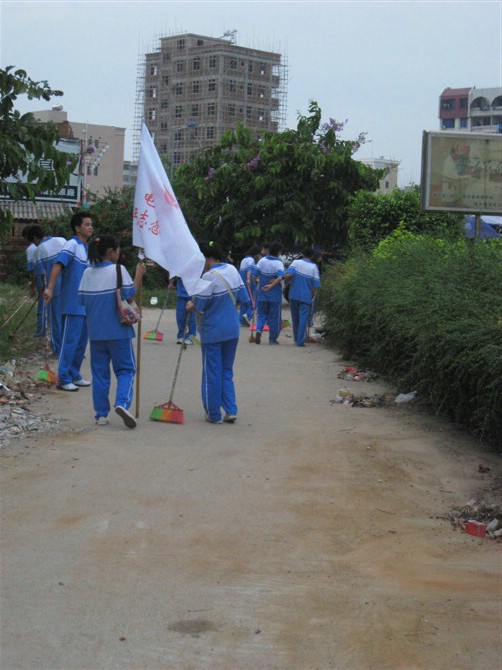 为积极响应县委县政府关于加强我县环境卫生整治工作,不断提高市民文明素质和卫生意识,营造整洁、祥和、优美的城乡环境,以崭新的面貌庆祝新中国成立60周年。电白一中团委根据上级指示精神,在26日开展志愿者美化环境大行动。