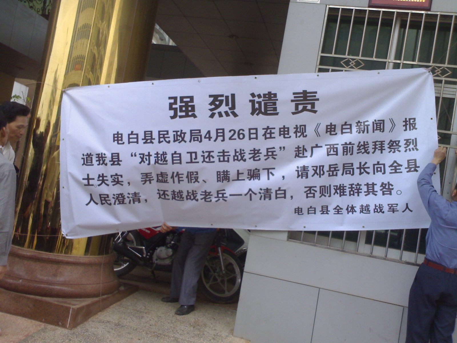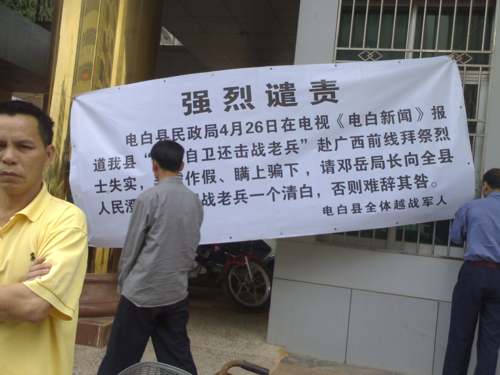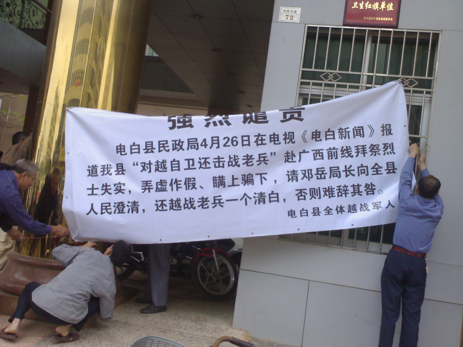 QUOTE(秋叶浪子 @ 2010年04月29日 Thursday, 11:44 AM) 几个人就能代表得了全体的电白籍越战老兵?起码代表不了我! [snapback]2958282[/snapback] 建议:起诉这四个人侵犯其它的电白籍越战军人的人权,冒用“全体电白县越战军人”的名誉。