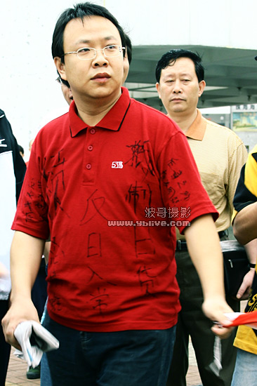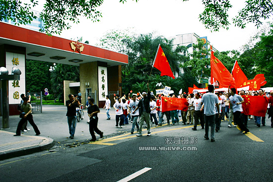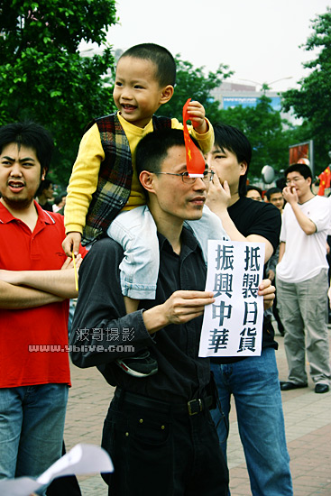 我们边走,边易趴诤,唱着国歌.就在这时候,和我一起的师弟发挥了他的大噪门,大易:抵制日货,爱我中华.从天河北到中信的路上,几乎有一半的口号是他在带头喊的...这个时候,我终于发现不帅的他原来还有真有点可爱...