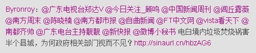 byronroy . 荣誉会员 注册 2005-08-17 消息 70,153 反馈评分 356 点数 191 2010-12-03 #13 [attachmentid=249749] 已经微博联系媒体朋友。 请大家继续给力,文明、理性陈述垃圾焚烧的祸害和事实。 附件 fyi.jpg 28.5 KB · 查看: 269