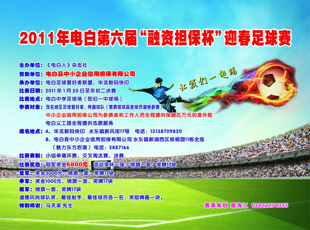 0 07ken 海江 小学五年级 注册 2008-05-16 消息 335 反馈评分 0 点数 0 年龄 18 2011-01-11 #96 电视宣传广告近期会在整个电白县境内滚动播出,敬请留意 附件 融资担保杯迎春足球赛-+.jpg 197 KB · 查看: 752