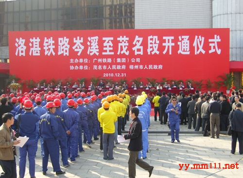 首趟货物列车由茂名东站开往岑溪方向,标志洛湛铁路岑茂段正式开通。12月31日上午,洛湛铁路岑溪至茂名段开通仪式在茂名东站站前广场举行,全国人大外事委副主任卢钟鹤,广铁集团董事长、党委书记徐啸明到场祝贺,茂名市委书记、市人大常委会主任罗荫国宣布洛湛铁路岑溪至茂名段正式开通,市委副书记、市长邓海光致辞,市政协主席冯立梅,市人大常委会常务副主任宋寿金,市委常委、秘书长、办公室主任陈淑芬,市委常委、常务副市长郭元强,市委常委、纪委书记廖锋,副市长黄心强,市长助理雷挺,广西壮族自治区岑溪市政协副主席李国,及三茂铁路公司及相关运营站段的负责同志出席。