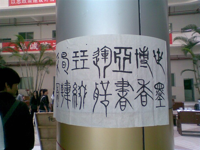 ..BB 初中二年级 注册 2005-08-18 消息 453 反馈评分 0 点数 1 年龄 36 2011-01-23 #1 [FONT=楷体_GB2312] 在大学第一次去尝试用毛笔写喜爱的篆书,辛苦学练了两天就去比赛了,写得有点糟糕```一直想找个老师教~~可惜找不到~~怎么可能就我喜欢而已啊 ? 附件 篆书2.jpg 104.1 KB · 查看: 680 篆书.jpg 101.4 KB · 查看: 650 嘻嘻.jpg 81.7 KB · 查看: 680