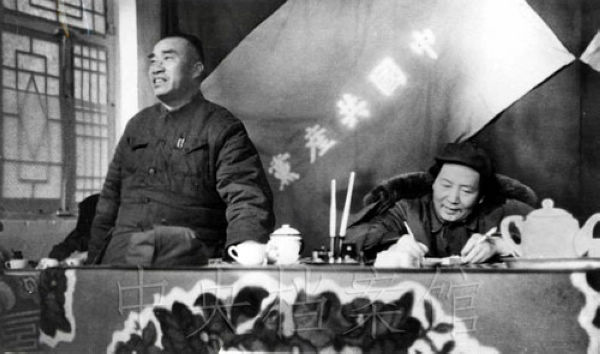 毛泽东、朱德在中共七届二中全会上。
