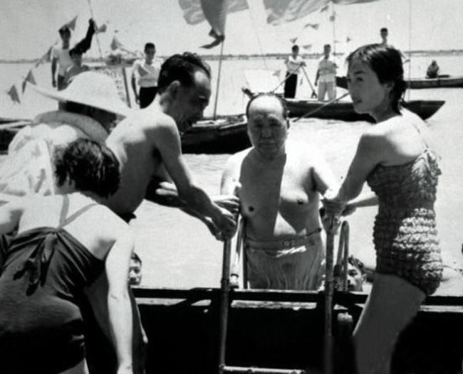 毛泽东最后一次游长江罕见照。