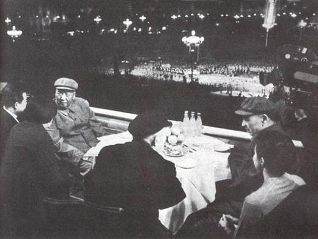 1971年毛泽东五一节在天安门晚会上。