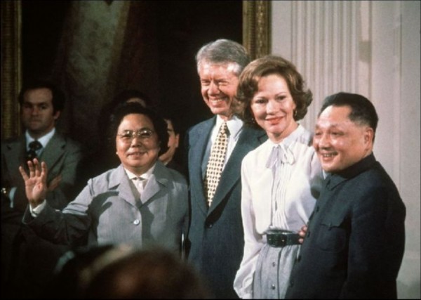1979年1月31日,美国华盛顿,邓小平和夫人卓琳与时任美国总统吉米・卡特和夫人罗莎琳・卡特合影。