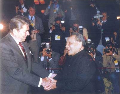1984年邓小平接见美国总统里根。