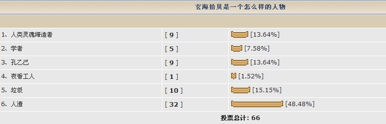 论坛首版共有42个主题,由“沧海”发起的主题占4个,由“沧海”的马甲“玄海”发起的主题占6个,合计:10 版面占有率:23.8%