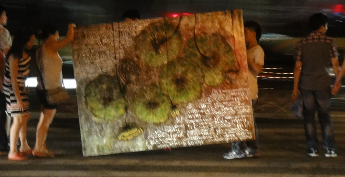 忘记说说了,这图是在人行横道拍的。刚刚好遇到2人抬画过马路