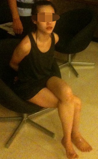 记者赶至现场时,这名女子已经穿好衣服被反绑双手端坐在大堂内的椅子上,但其依然自言自语,一时粤语,一时普通话,一时又蹦出几句英语粗口。据其自我介绍,其来自香港,男友不要她了,但她想争取,因为男友在新都酒店订了房,其想进入酒店,但保安不让进,“不让我进,那我就脱给你看。”这名女子说,她并没有喝酒,也没有吸毒,就是来这里找男友,男友名叫“罗凯,又名罗豪义(音)”。她为自己的举动表示抱歉。