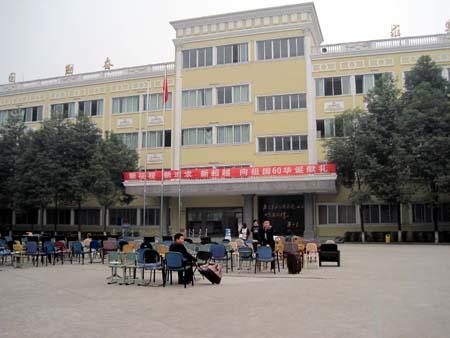 在一位老师带领下,记者化装成寻找亲戚的人员进入学校。一进校门记者就看到学校操场旗杆下摆放着大片椅子,有学生告诉记者说,“上午的时候,老师全在这里静坐。”
