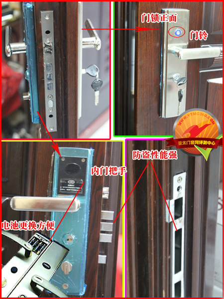 锁具安装良好,打开费力程度较小。配备盼盼专业锁,采用世界高档品牌锁具,土耳其卡列锁具,黑匣子,指纹锁,客气灵活防盗性能更强。锁孔为箱式一体结构,造型简洁、牢固,防盗性能大大提高。