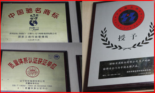 盼盼安居股份有限公司是国际门类协会会员、全国重合同、守信用单位、辽宁省44户重点保护企业,辽宁省高新技术企业。公司通过了ISO9001:2000质量体系认证,ISO14000环境认证,CE认证;并在同行业率先通过了志愿性认证。盼盼商标是中国驰名商标,产品是中国名牌产品,辽宁省名牌及十大轻工名牌产品,国家商务部出口名牌产品。