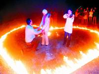 450根燃烧着的红蜡烛在地上拼成“I LOVE YOU”,60米长的绳索“画”成心形图案在燃烧,柔美的小提琴曲子《月亮代表我的心》轻轻响起……昨晚8时30分,当看到男朋友为自己准备的“圣诞礼物”时,29岁的舒舒感动得“竟无语凝咽”。