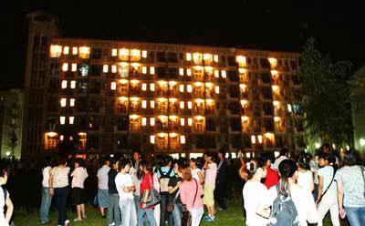 2004年5月20日日晚上,一位男生为了追求一位女生,在杭州下沙的计量学院女生宿舍9号楼南楼用灯光组合出了“I LOVE YOU”。该男生为此还给该楼每个宿舍的4同学每人一罐可乐再加一包糖,共花了七百多块钱搞定了整幢楼