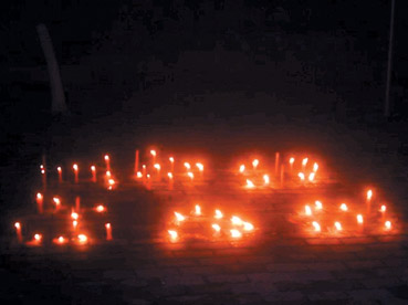 昨晚22时30分左右,由99支蜡烛拼成的“I LOVE YOU”(我爱你)图案整齐地摆放在该校6号女生宿舍楼下(上图),旁边一位个头不高但很秀气的男生怀抱一束鲜艳的玫瑰花,伫立在楼下向3楼一女生宿舍内痴痴地望着。这位男生公开示爱的大胆举动立即在校园内引起了轰动,引来了上百位学生围观,好多人还帮他敲盆子、吹口哨加油助威,更有人帮他呐喊让那个女孩快出来。