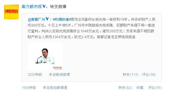 原茂名市副市长杨光亮获刑19年