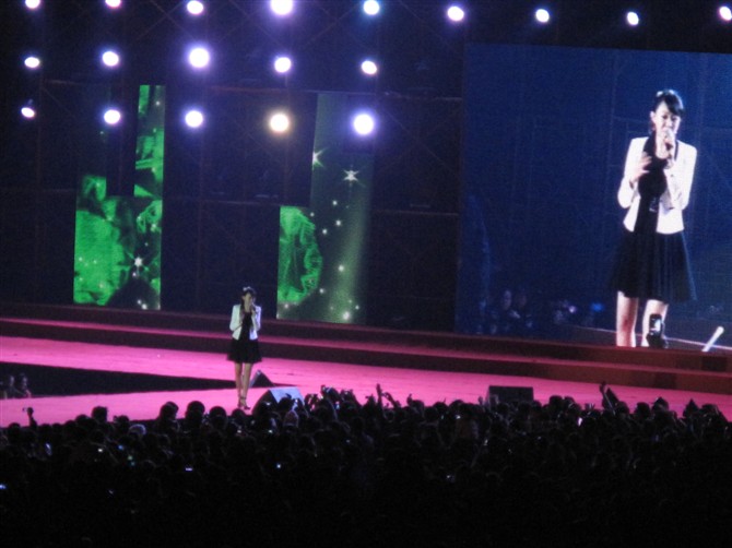 对比卓依婷16日在湖南邵阳城,再看17日晚的演唱会,赶路赶得连衣服都没来得及换,是同一套衣服.呵...