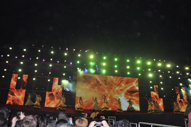 17号晚的演出,观众入场至九点才人齐,九点开演十一点半左右结束,现场风很大。