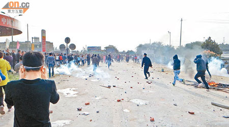 村民们冲击深汕高速公路,武警则释放催泪弹并放火烧山试图迫使村民撤退,但村民投掷石块和瓶子进行还击,并推翻警车。