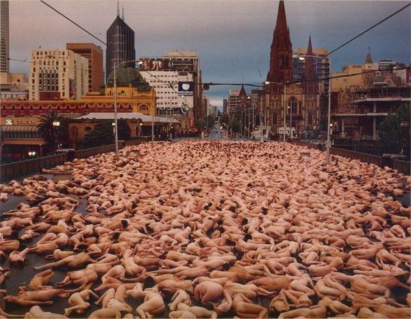 在城市拥挤的公共环境中的裸体常常和艺术行为有关。美国人斯潘塞.图尼克的裸鼠模特裸体摄影成为另一个文化现象,全球各地已有大约18万名裸体志愿者参与了他的群裸艺术摄影。