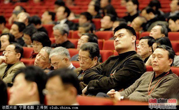 这张照片是姚明在上海参加人大会议的照片,看看姚明身边的那些个老朽所谓的专家,他们在干什么。听取报告时睡大觉,睡醒了盲目的按表决器,别人发言他们睡觉,轮到他们发言了胡说八道不服一点责任。你们可是代表着人民在行使参政议政的权利啊,中国的命运可是掌握在你们手里啊,你们的所作所为让我们非常的担心和失望,从这些人的表现上来看,中国的人大代表、政协委员的选举存在着非常严重的问题,真正能够代表人民意志的人在代表和委员当中能够占多大比重很值得怀疑。