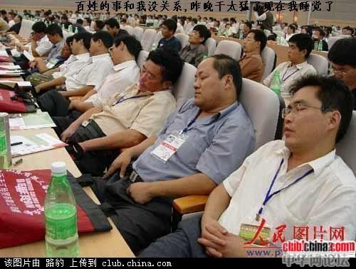 要知道中国没有开会的,只有听会,睡不睡结果都是一样,听不听都是废话。