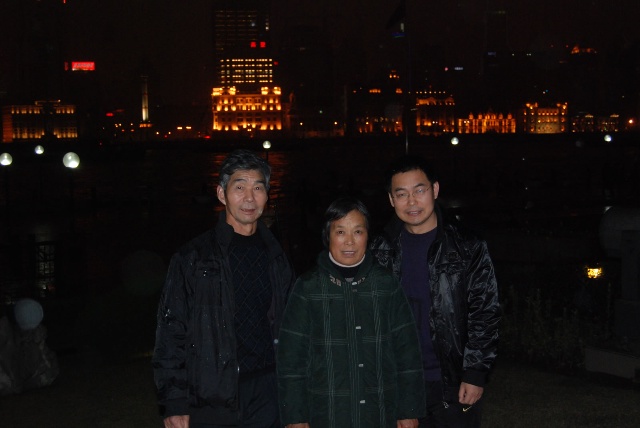 时寒冰与父母亲在黄浦江边的合影