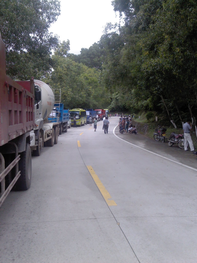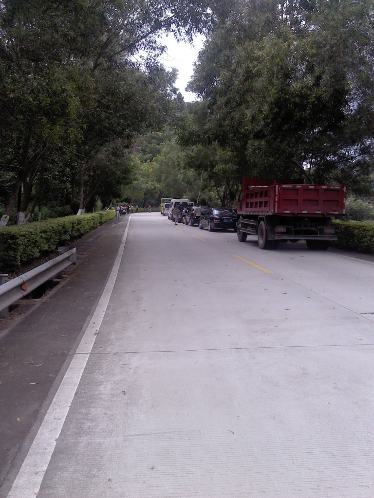 很快就到了五指山地界,前面很多车都停着,一问交警,才知道前面发生车祸,道路堵塞了。