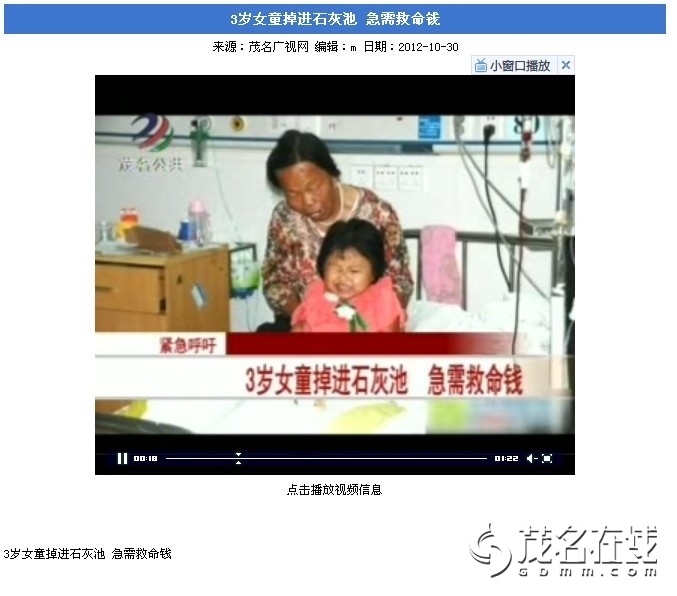 茂名在线网友一颗爱茂心:经茂名在线微博和网友三少爷等人的微博转发,特别是粉丝群巨大的微博局长李晓强转发后,引起很多知名博主的关注,如奥一网问政平台,南方民间智库,凤凰卫视前主持人杨锦麟等人,他们的积极转发让全国很多网友都知晓了小雅思的紧急状况,反响巨大!截至10月29日下午5点,小雅思妈妈的邮储帐号已经收到3万5千元的捐款,其中大部分是国内其他地区网友汇来的,我们相信,这场爱心接力一定会延续下去,油城人的爱心也一直充沛涌动,一定会在3天内为小雅思筹到10万救命钱的!谢谢! 茂名电视台一线新闻已播出新闻,呼吁广大热心市民踊跃捐款帮助小雅思 [attachmentid=302243] [attachmentid=302244]