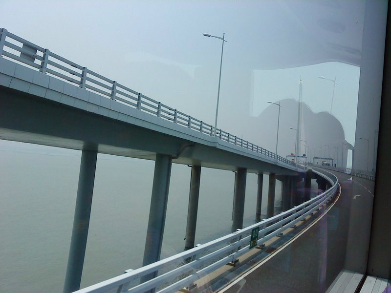 从深圳湾口岸过关后坐巴士,经过深圳湾大桥,这桥壮观程度有点接近虎门桥.
