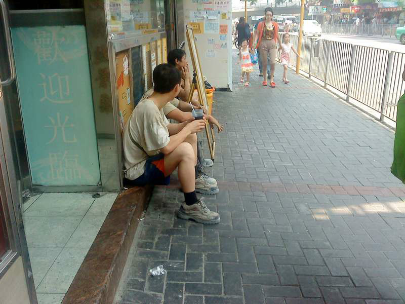 饭后在门口休息的年轻地盘工人,满身尘土,但脸上的精神面貌却不是一般的健康抖擞.