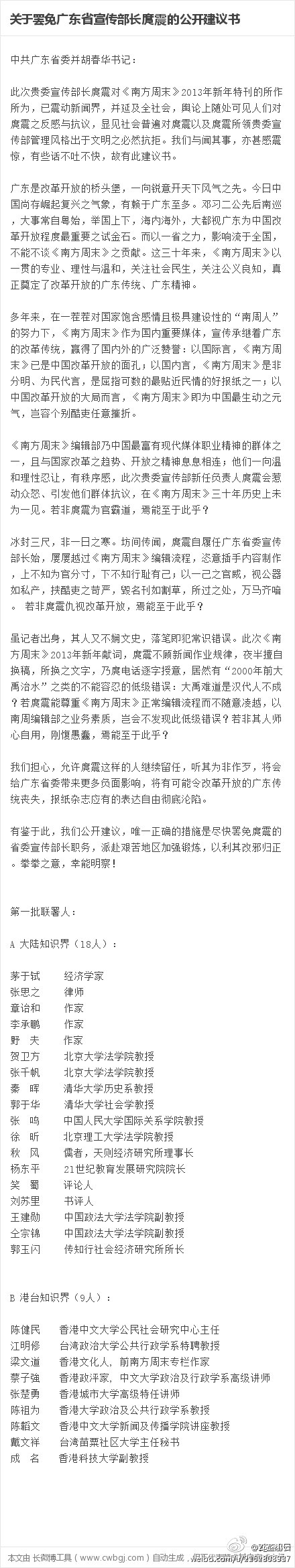 昨日(1月8日),北京《新京蟆繁灰求Dd1月7日《h球r蟆房lP於日前在V州l生的《南方周末》撤版Q稿事件的社u,由於《h球r蟆凡痪呙的社u非常具有h,遭到《新京蟆肪部的拒^。北京市委宣鞑抗TH自到鲞^,笊缱罱KQ怼赋啡恕⑼?、整D」的分威{。