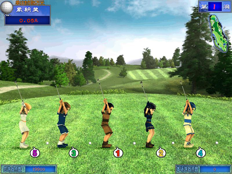 “趣味高尔夫”是在游戏过程和画面场景上借鉴高尔夫运动而设计的一款概率型休闲游戏。游戏过程中,彩民可以选择1-5名选手打高尔夫球,每场游戏设置18个球洞,彩民从第一个球洞开始击球,当高尔夫球所落的区域满足过关条件后即可打下一个球洞,打完18个球洞,进入中奖环节“果岭推杆”,一场游戏结束。 “趣味高尔夫”的游戏环节模拟了高尔夫球比赛过程,画面健康时尚且富有变化,能体验到参与高尔夫运动的愉悦。