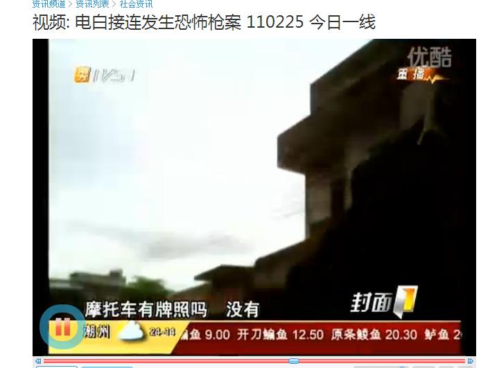 电白枪击案屡屡发生,各大媒体也披露了,今晚闲来无事百度一下,结果可真是人心惶惶哦!也许我们电白人都习惯了,不知道\恶势力什么时候又来勒索,又来大开杀戒......况且电白终年发生那么多命案,有多少件受理了,又有多少件已经破案了的?