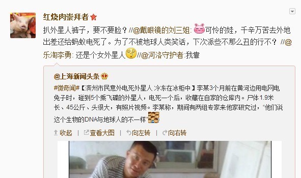滨州网友意外电死外星人 并冷冻在自己冰柜中
