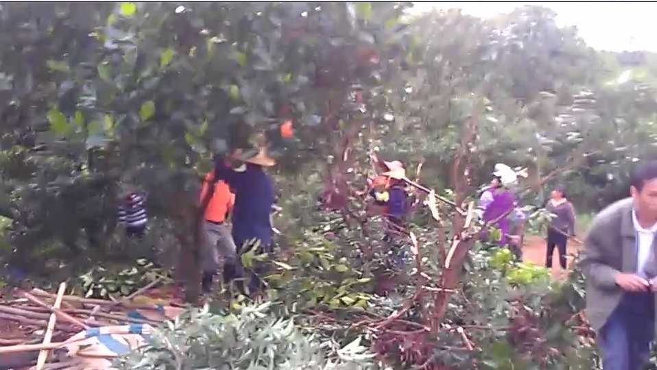 大家好,近期在网站论坛闹得沸沸扬扬的林头镇黄阳村委农民黄汉光用生命维权事件和林头镇干部被迫当街下跪事件,已在社会上引起了不少议论。在此,我黄国周作为当事人,想借此机会向大家说几句,好令大家能够如实客观了解事情真相。大体上如我父亲在农民有苦无处申,只能用生命维权的叙述一样。在这里我想补充几句,因为这块地(1.5亩)是属于我三仔车村铺仔岭的一部分,这块地四至范围都是我村村民从原来村集体分得的坡地,都已种上荔枝几十年,这都是客观事实存在。渡头村不管怎样狡辩都改变不了事实,事实就是事实,不是任何人随便改变得了的。又经过县、市政府、市中院,经过两年来通过深入现场,走访当地群众了解,才作出一致的确权,裁决,属于我方合权益。事实法律依据充分确凿,毫无疑问。可渡头村不法之徒就是不服,就是要以其人多势众,硬抢。三年来多次非法组织几十人走上门来打砸,砍树,去制止就打人。