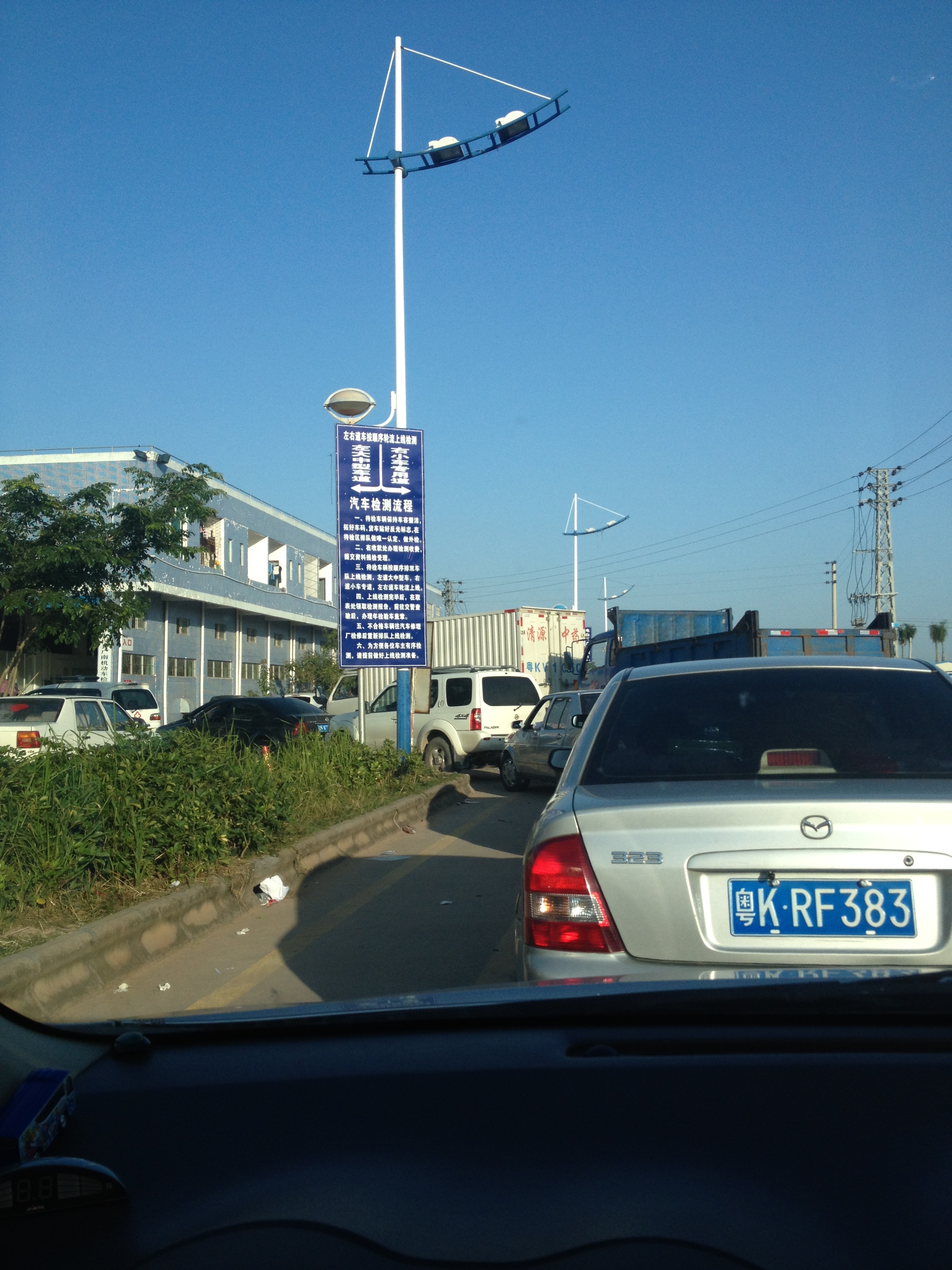 本人今天(29日)到电白县广南机动车检测中心为爱车做年审,到达检测中心附近时已经14时40分,两条等待检测的车龙长达百多米,不下50辆机动车,而且后面陆续有车辆加入长龙排队。我的车进入检测线时间为17时32分,已经是下班时间,后面的车主可谓心急如焚,排了半天可能白费功夫,此时检测中心吴主任现场明确要求检测工作人员延长工作时间,为后面所有车辆进行检测,虽然是二九天,检测员海仔却忙得额头出汗,热情耐心地为车主进行安排检测,谢谢海仔和其他检测线的工作 人员。我的车子从检测线下来接近18时,而交警刑侦验车处的温姓警官竟然因为车多还没有下班,很让人感动!