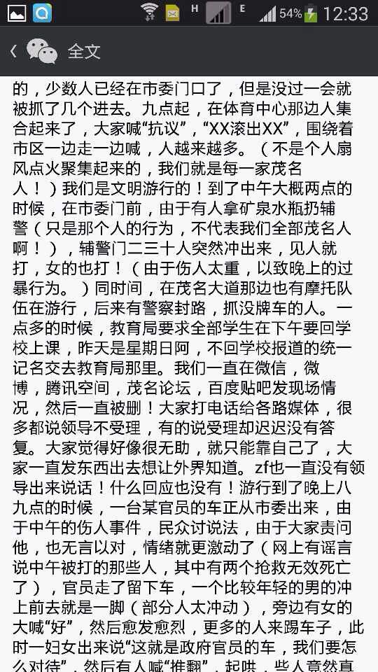 有人借机闹事……也表明茂名是一座民怨很大的城市……