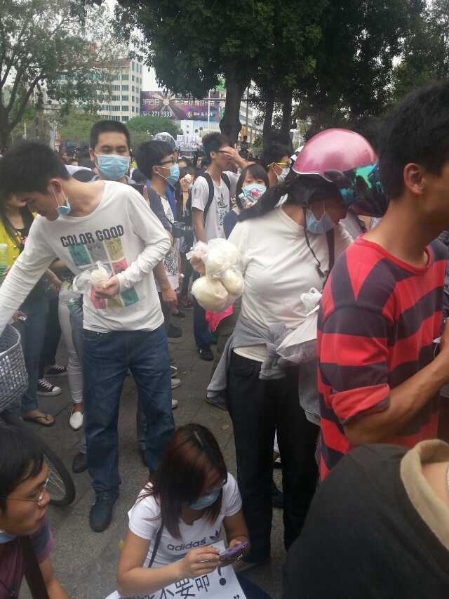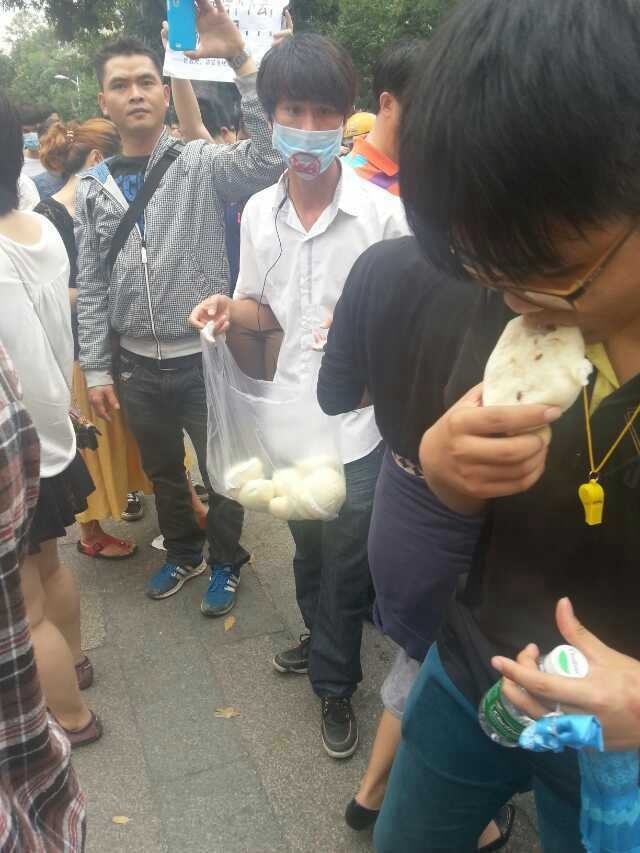 市民自发送面包。领导们,你们在想些什么?在吃些什么?茂名市人们的生命在你手中。你安乐无忧吗?当官不为民,还有良知吗?种蕃薯都不配!