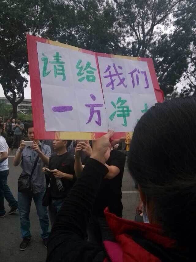 这,就是民意!在茂名当权者高压的白色恐怖下,没谁愿意冒被抓被处分的风险上街,谁没有家庭?谁愿意家人生存在污染环境之下,或许,我们都不富有,没能力把家人搬离此地重新安顿,但我们心中都还有一份责任,作为一个人,最起码的责任,不为自己,为了家人和下一代