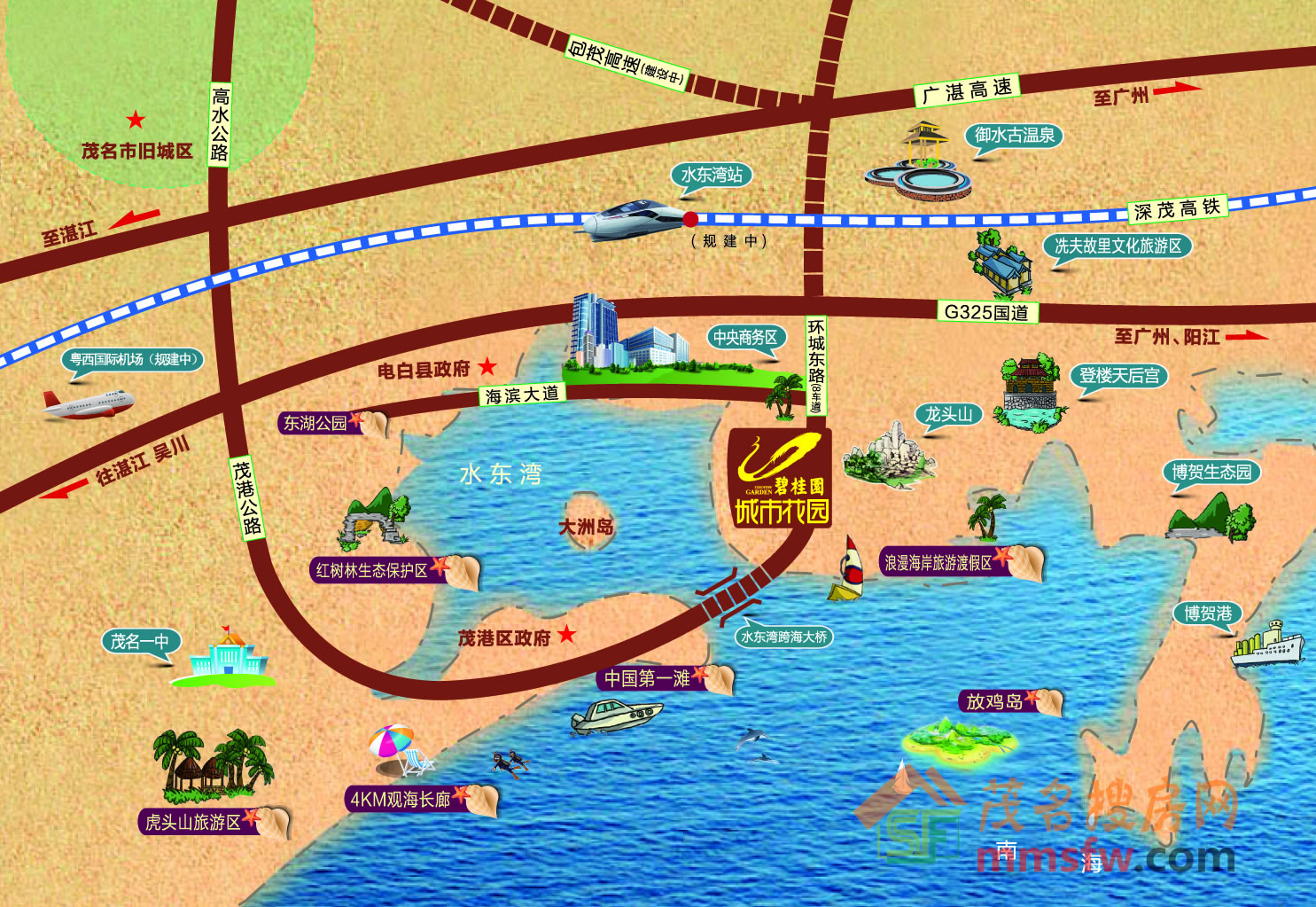 急急急!十年后:茂名中心城区水东湾150万市民没有高铁坐,无法享受到高铁“2小时内到广州,3小时内到深圳”的福气,全城人只能接受汽车“4小时内到广州,6小时到深圳”的无情现实了!呜呜呜!……(到时相信95%的水东湾人不会选择往回走25公里去茂名东坐高铁的,中心城区市民得到如此待遇,愤怒!)