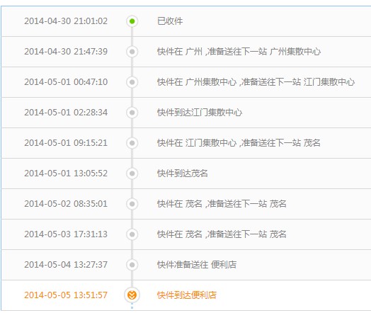 2014-05-01 11:55:17快件在茂名,准备送往下一站