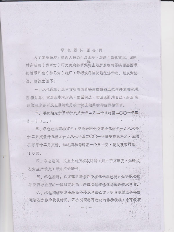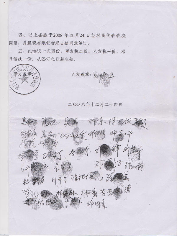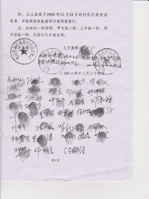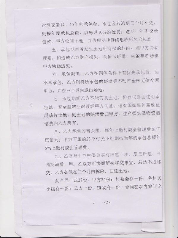 2、对村镇干部以往违反有效程序发包、出卖村集体土地和其它资产的行为进行查处、纠正、取缔;