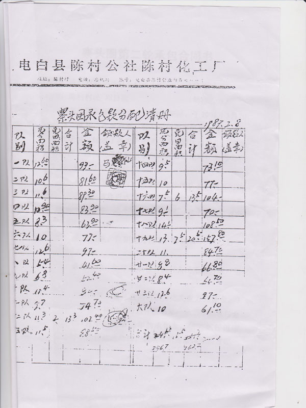 2010年,时任电白县陈村镇党委书记陆小莉,联合镇党委委员邓斌干、陈村农业村委书记(前任)邓华干及村委主任(前任)吴奇才,以政府征用(征收)土地为由,征用(征收)陈村镇登步南盐田,涉及面积450亩。据了解,征地补偿款按每亩5.7万元标准计算,总金额为:450亩×5.7万元=2565万元。