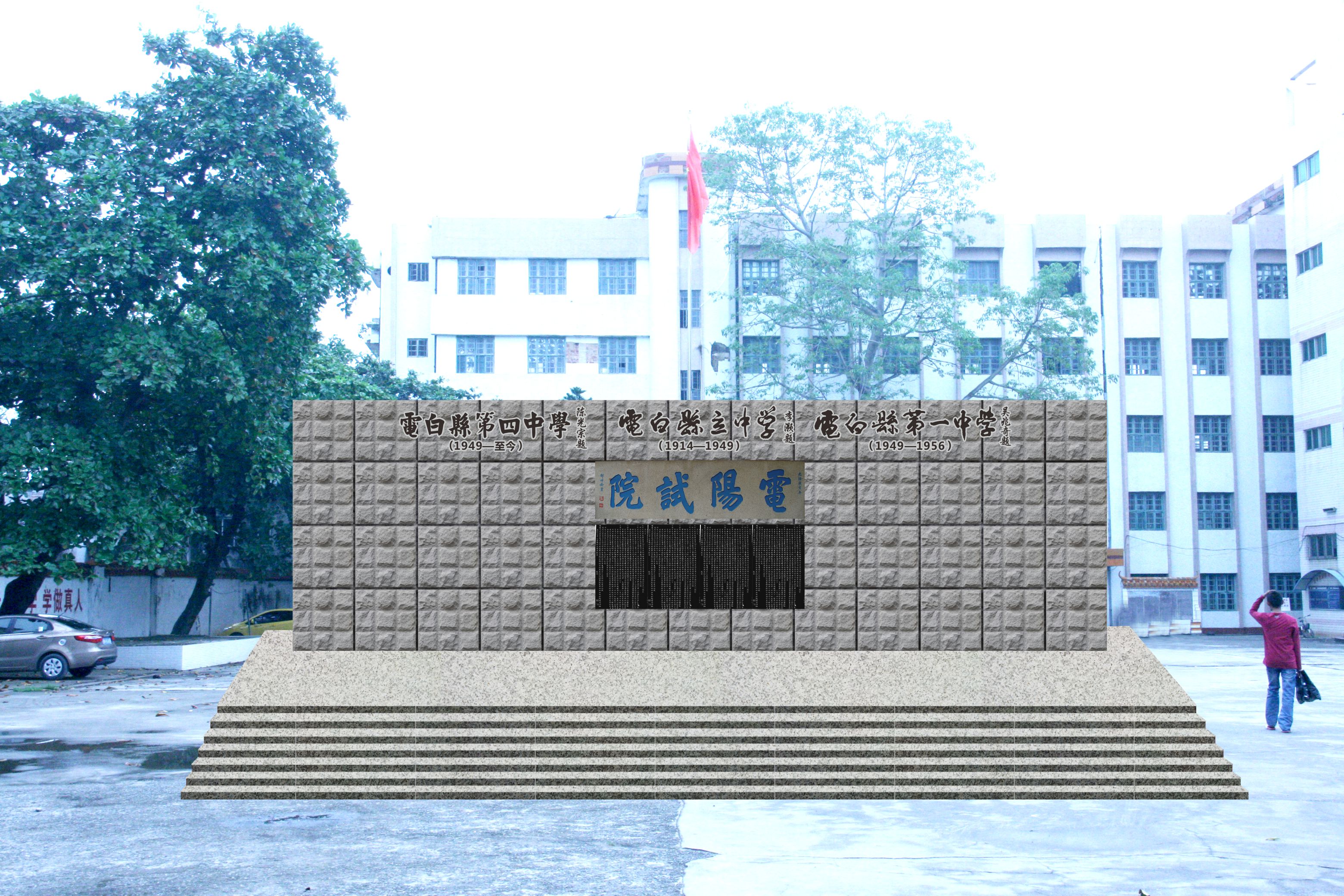 二,《电阳试院》纪念标志墙和升旗台和舞台设计理念: