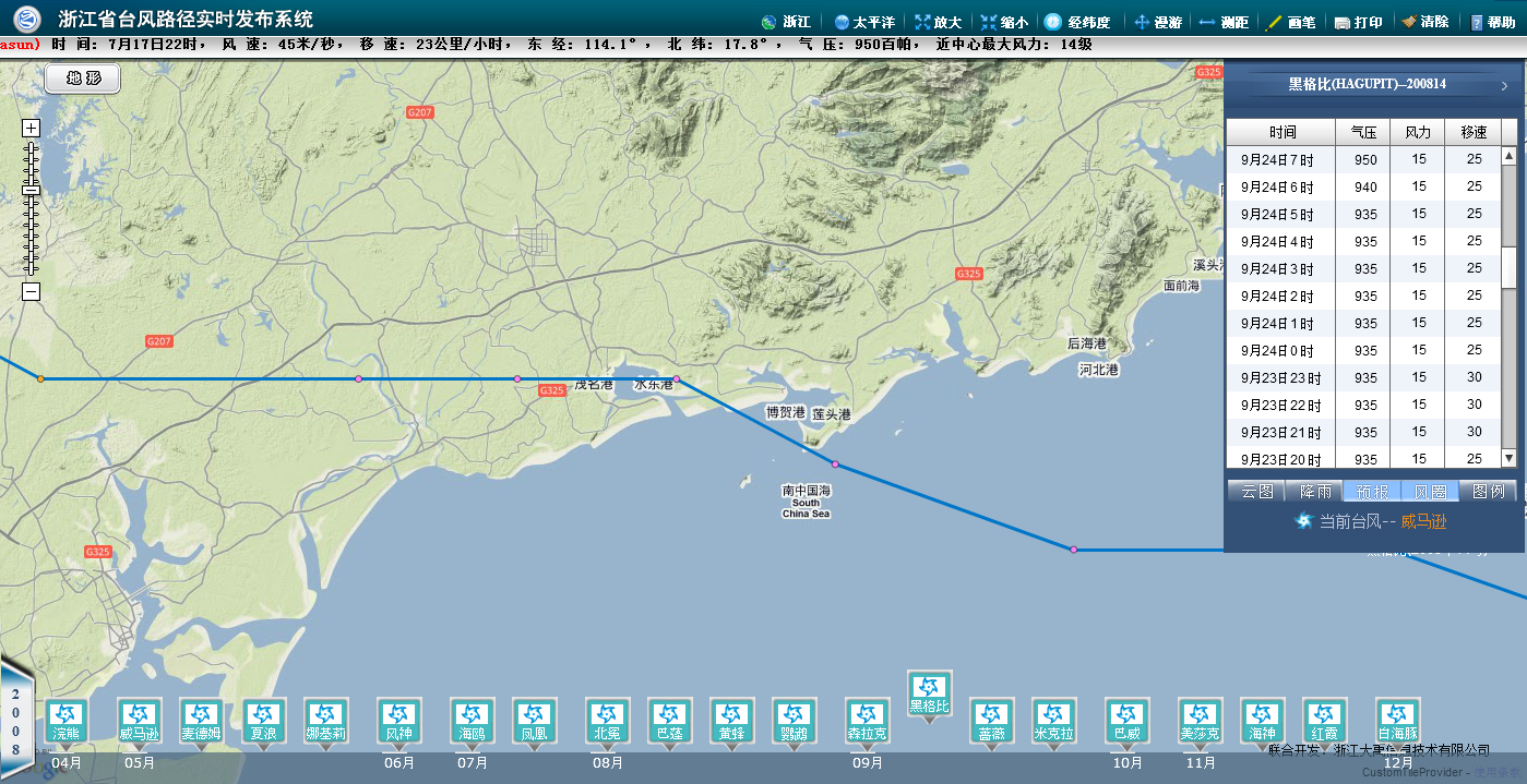 2008年“黑格比”与今年“威马逊”路线对比图: