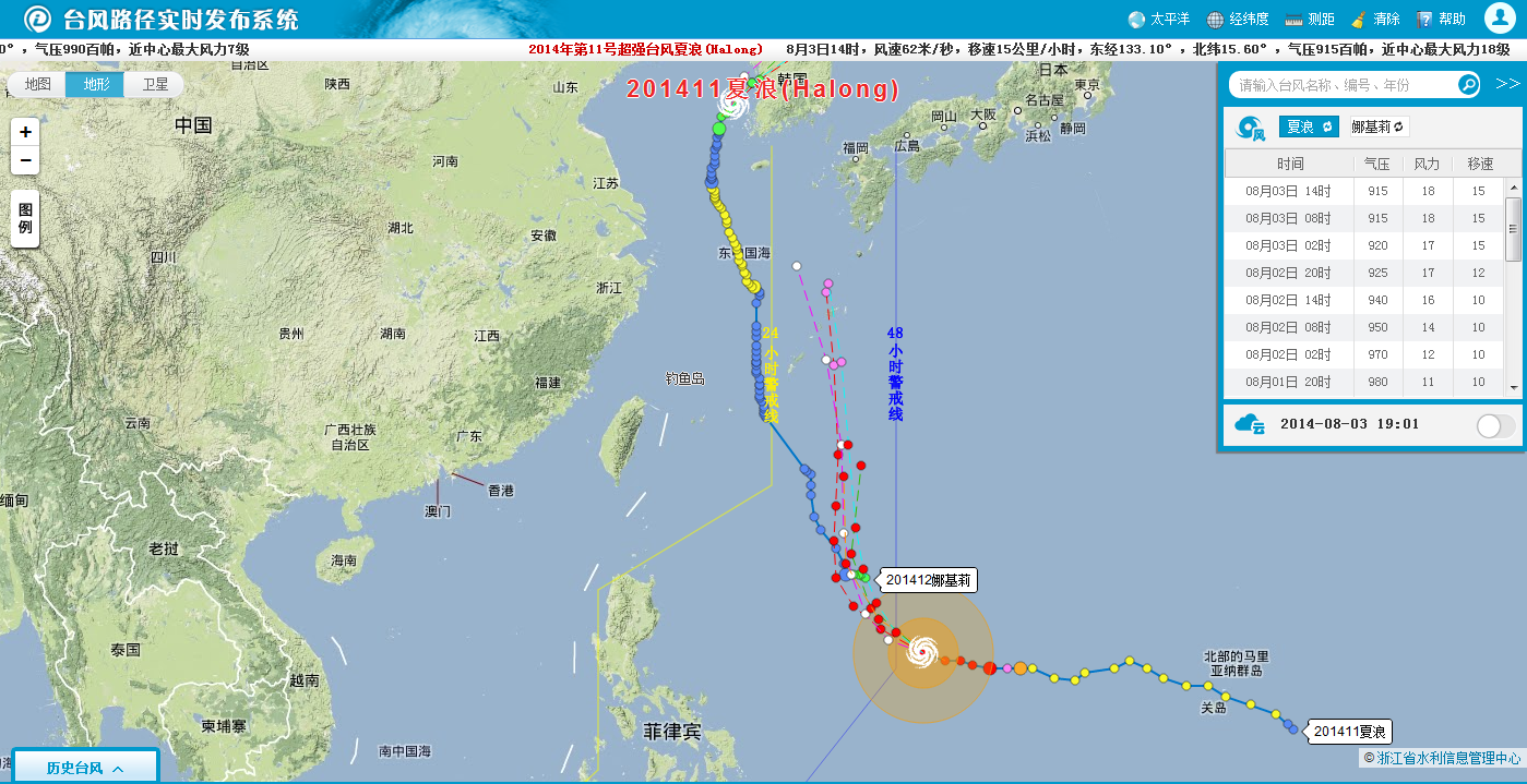 QUOTE(电白区人民 @ 2014年08月03日 Sunday, 05:30 PM) 这才是真实的,楼主乱发信息。 [snapback]3681462[/snapback] 楼主说的是今年第11号台风“夏浪”,你说的是第12号台风“娜基莉”,楼主没乱发信息,至于是否吹向广东还有待观察。 [attachmentid=330811] 最大风力18级,比“威尔逊”还厉害。